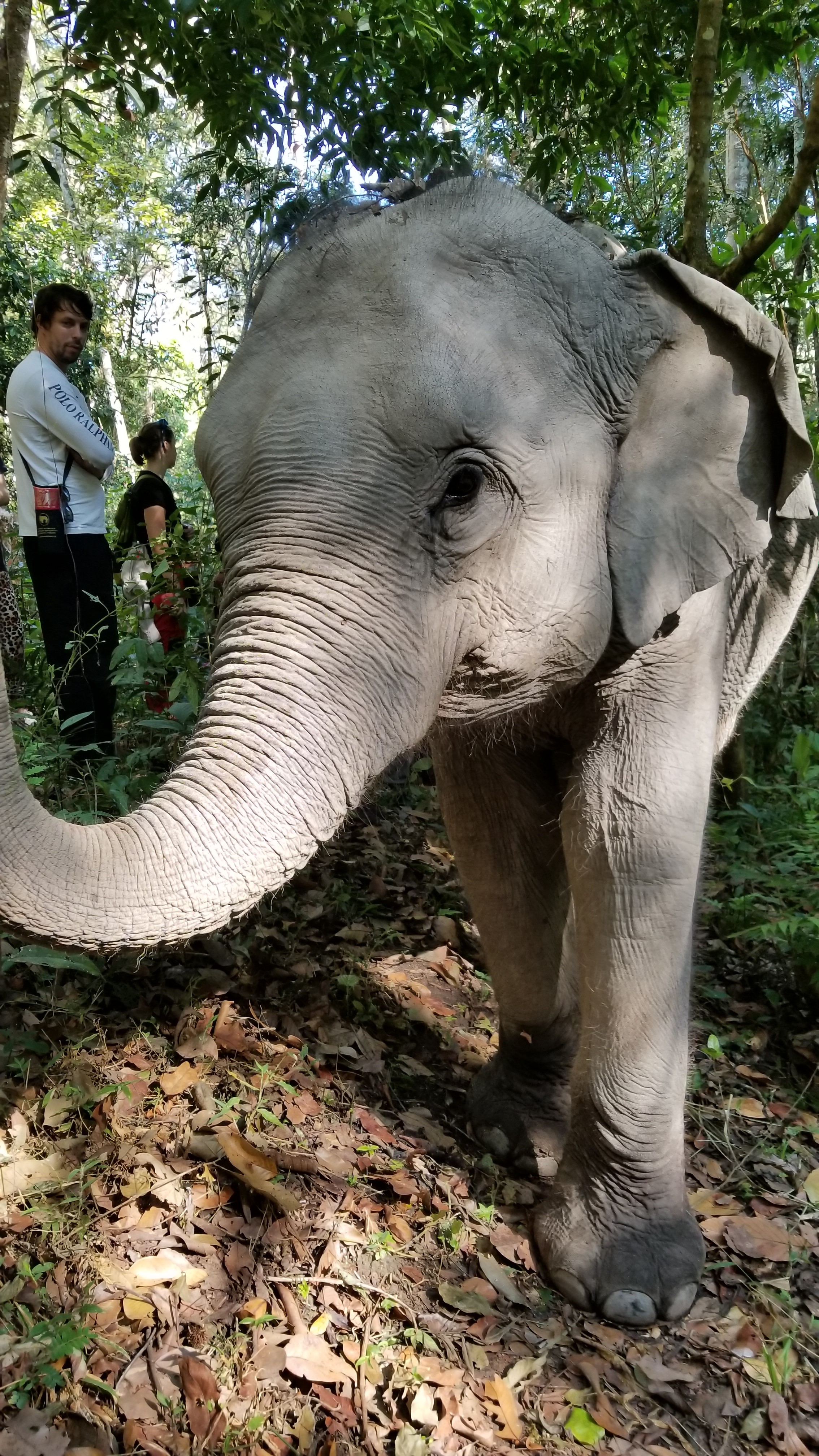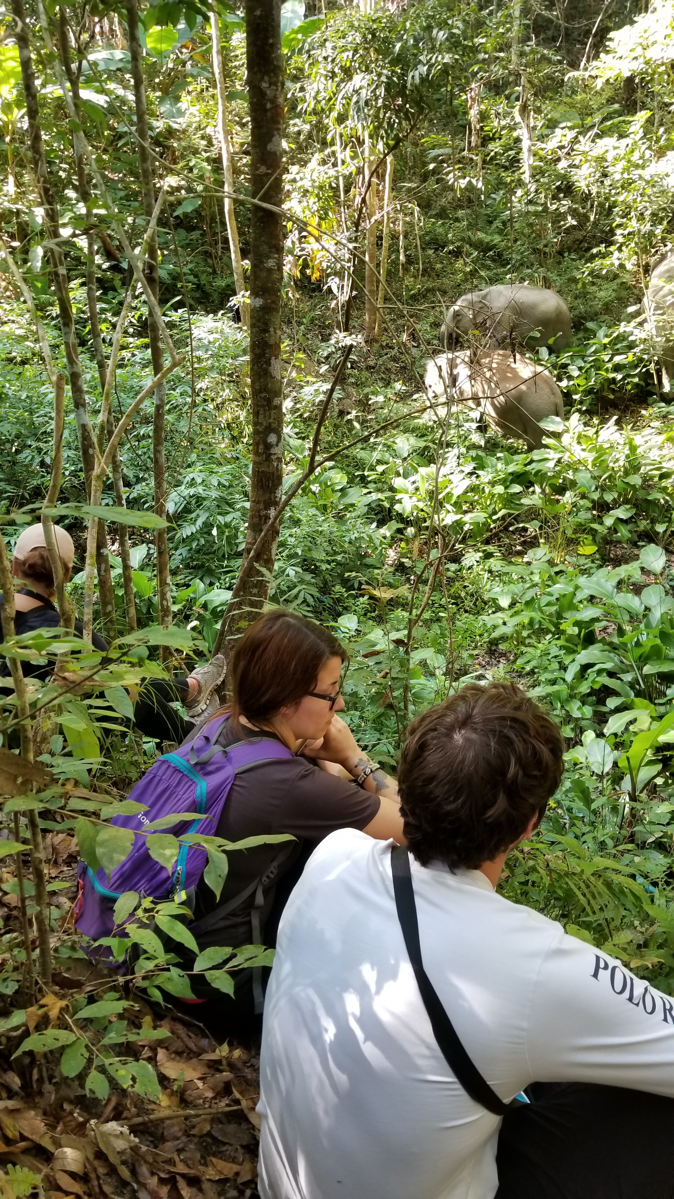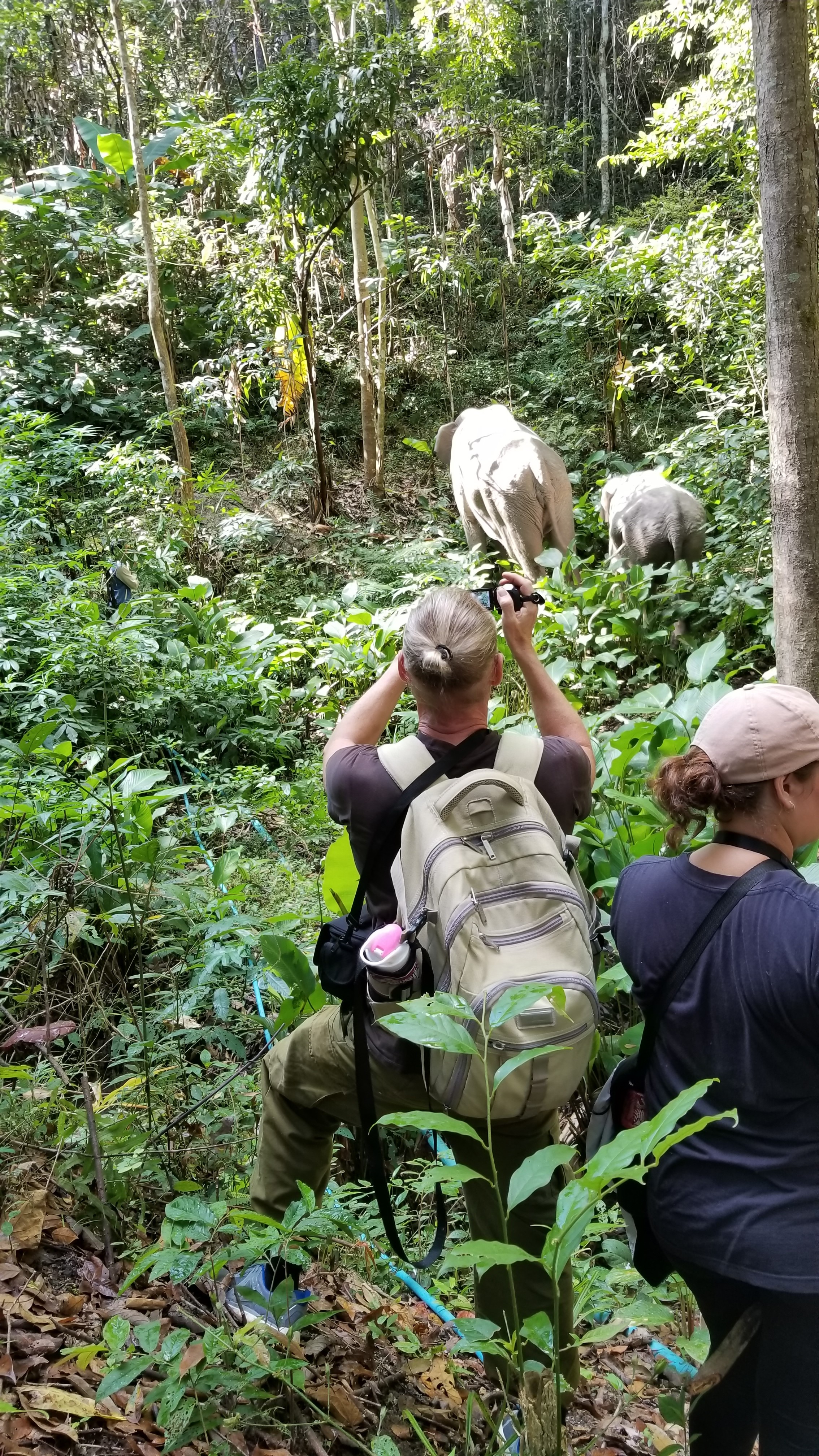 午飯過後,我們繼續探訪另一頭大象 Arawan。但牠好像跟我們玩捉迷藏,永遠不肯停下腳步。我們要跟著大象在山上走,牠上山我們就要上山,牠下水我們就要下水…實在非常不容易。那些路,只有大象走過,有時甚至無路可走,要硬來的。