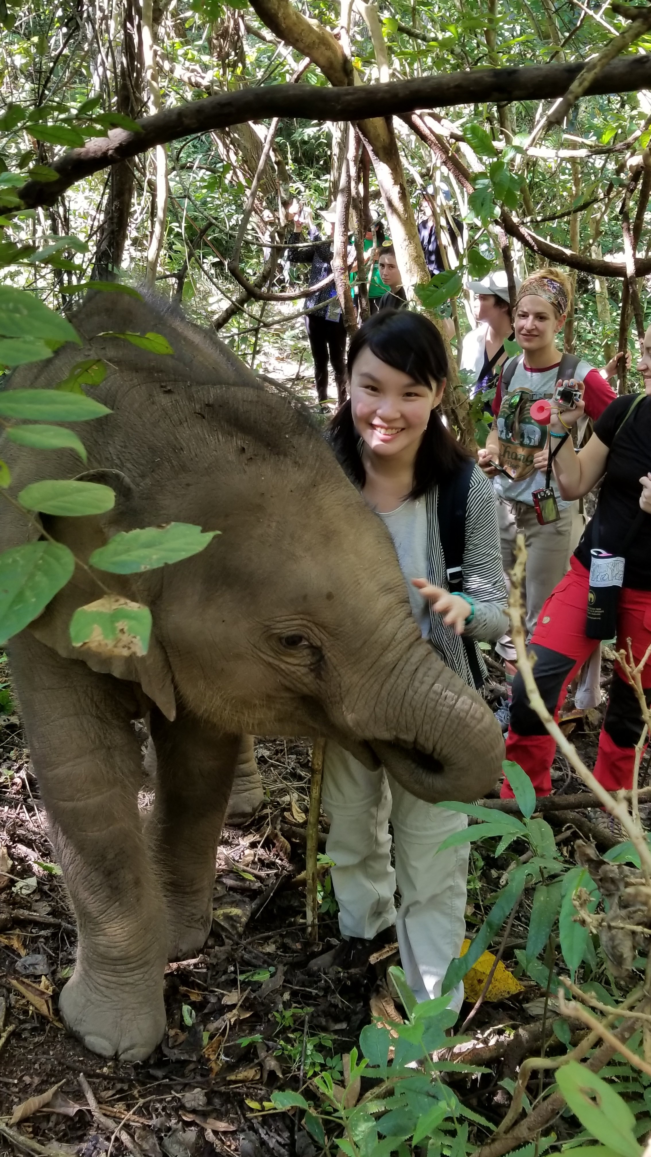 重點來了!探過三頭大象,我們便移師另一個地方。這裡,終於可以見到我們的象BB—Gili。Gili的母親是Mea Boon Si,牠獲救前因為被作為遊客騎乘工具而導致背部下陷及腳部受創。Gili是牠獲救後,在山中生下來的寶寶。