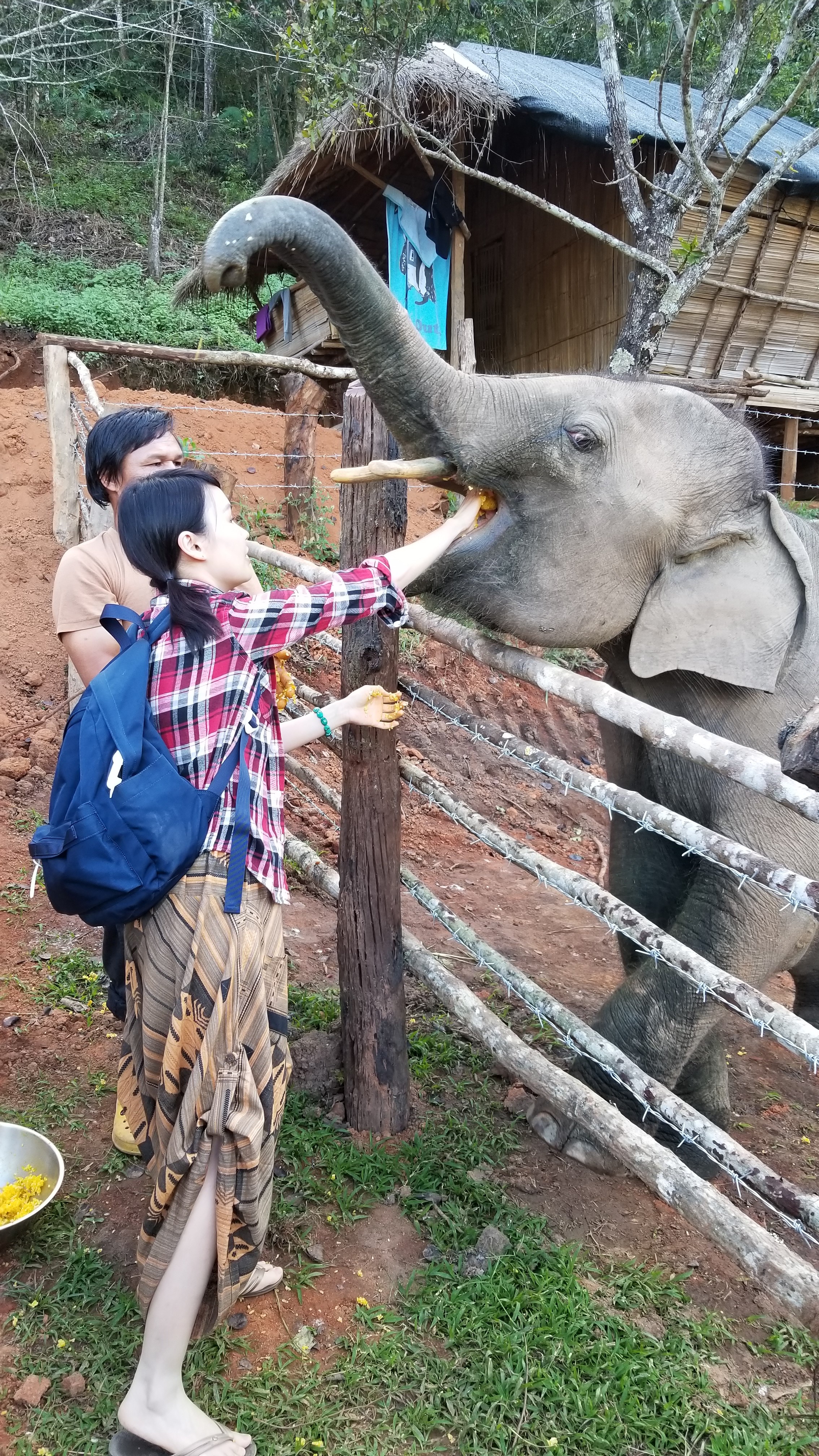 午飯過後,營地來了兩頭象。象媽媽Poon Chan和小象Suki。小象Suki的故事頗悲傷,牠因為天生有殘缺,出生時差點被母親所殺(這大抵是動物天性),後來獲ENP救援,需要每日24小時由兩名工作人員輪班照料。