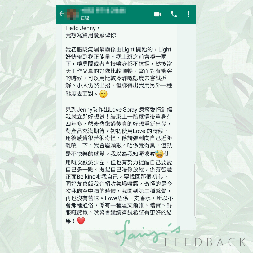 顧客回饋 —「LOVE自愛氣場噴霧」用後感